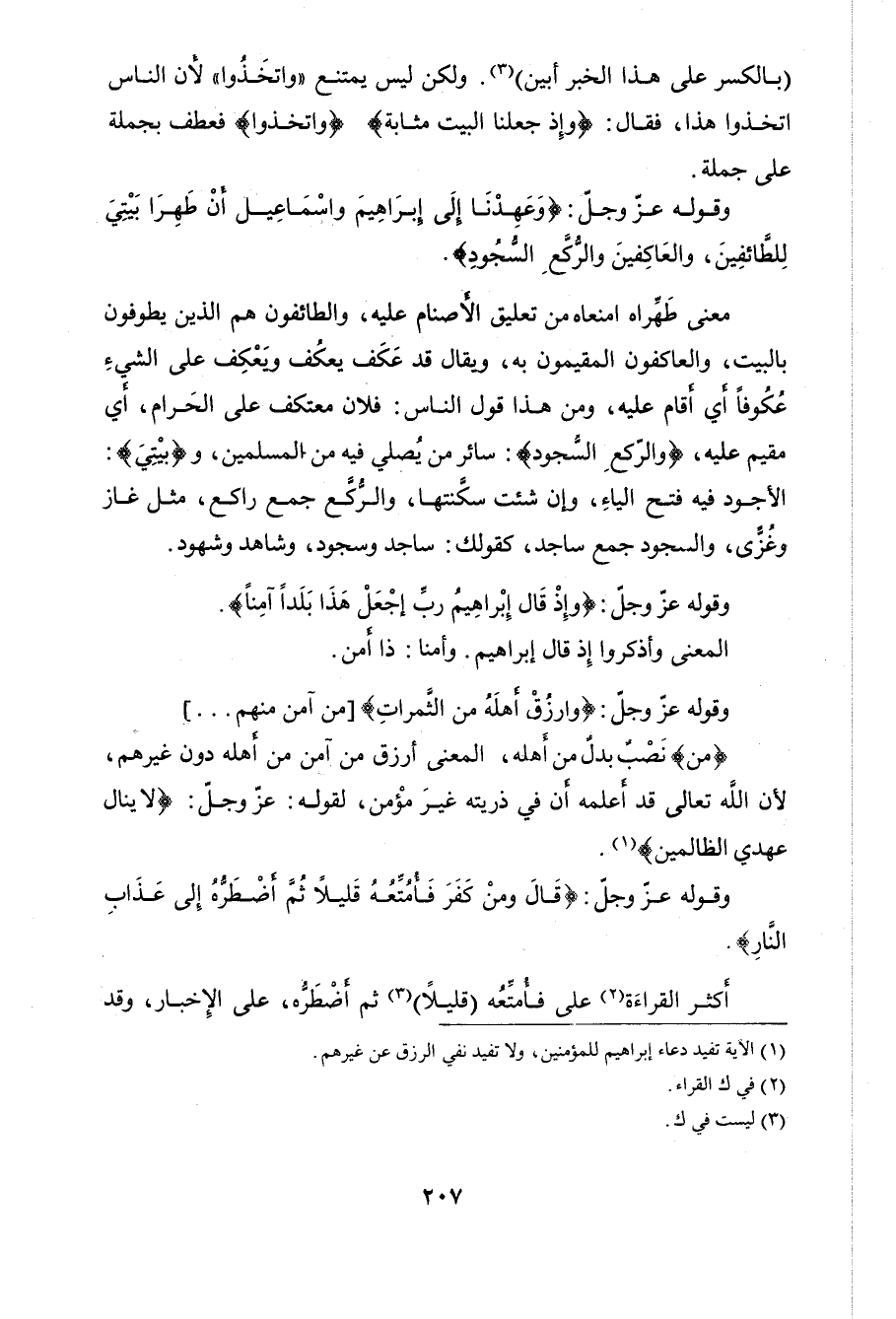 وقوله عزَّ وجلَّ: (وَإِذْ قَالَ إِبْرَاهِيمُ رَبِّ اجْعَلْ هَذَا بَلَدًا آمِنًا وَارْزُقْ أَهْلَهُ مِنَ الثَّمَرَاتِ مَنْ آمَنَ مِنْهُمْ بِاللَّهِ وَالْيَوْمِ الْآخِرِ قَالَ وَمَنْ كَفَرَ فَأُمَتِّعُهُ قَلِيلًا ثُمَّ أَضْطَرُّهُ إِلَى عَذَابِ النَّارِ وَبِئْسَ الْمَصِيرُ (126)