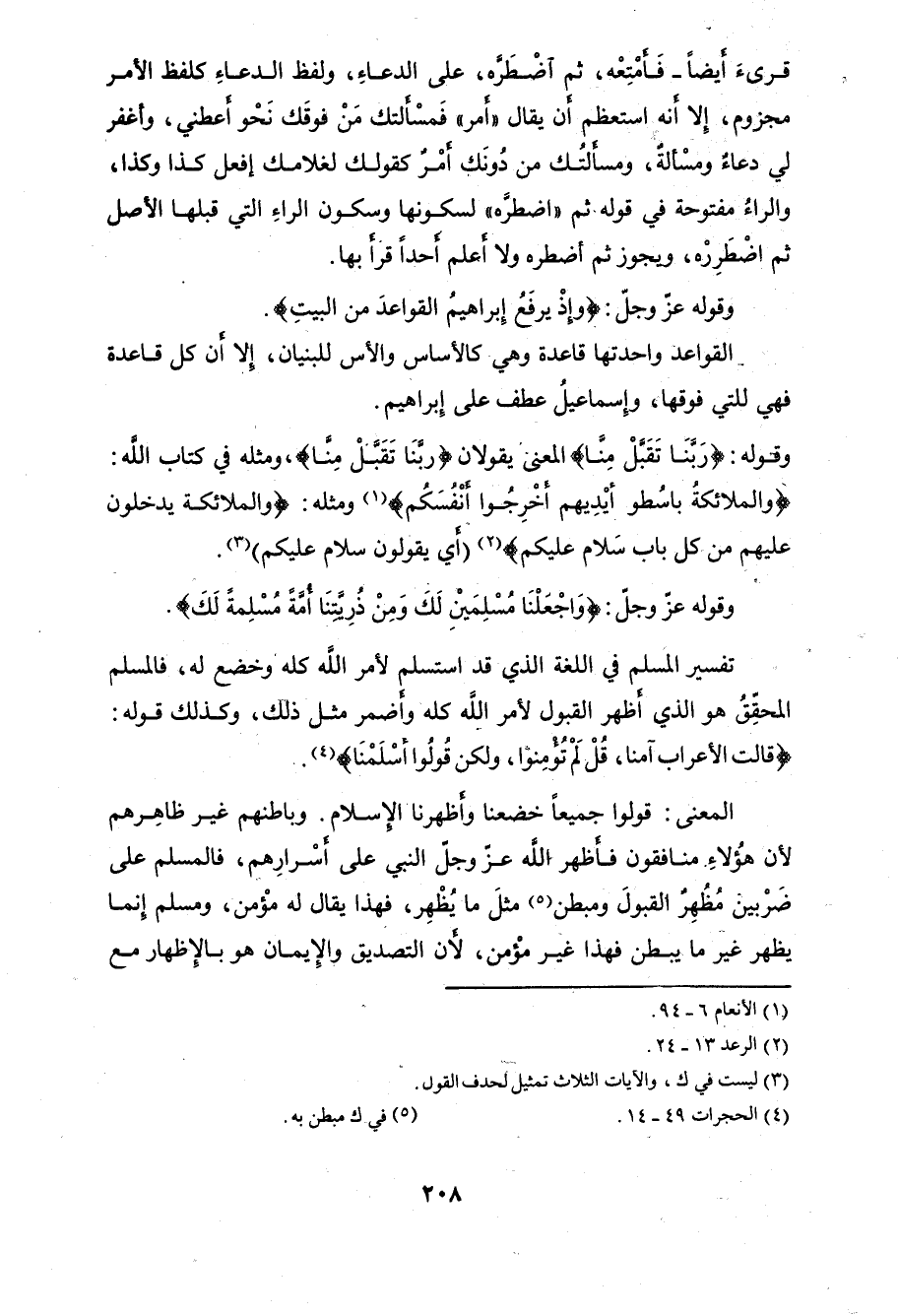 المحققُ هو الذي أظهر القبول لأمر اللَّه كله وأضمر مثل ذلك، وكذلك قوله: (قَالَتِ الْأَعْرَابُ آمَنَّا قُلْ لَمْ تُؤْمِنُوا وَلَكِنْ قُولُوا أَسْلَمْنَا). .