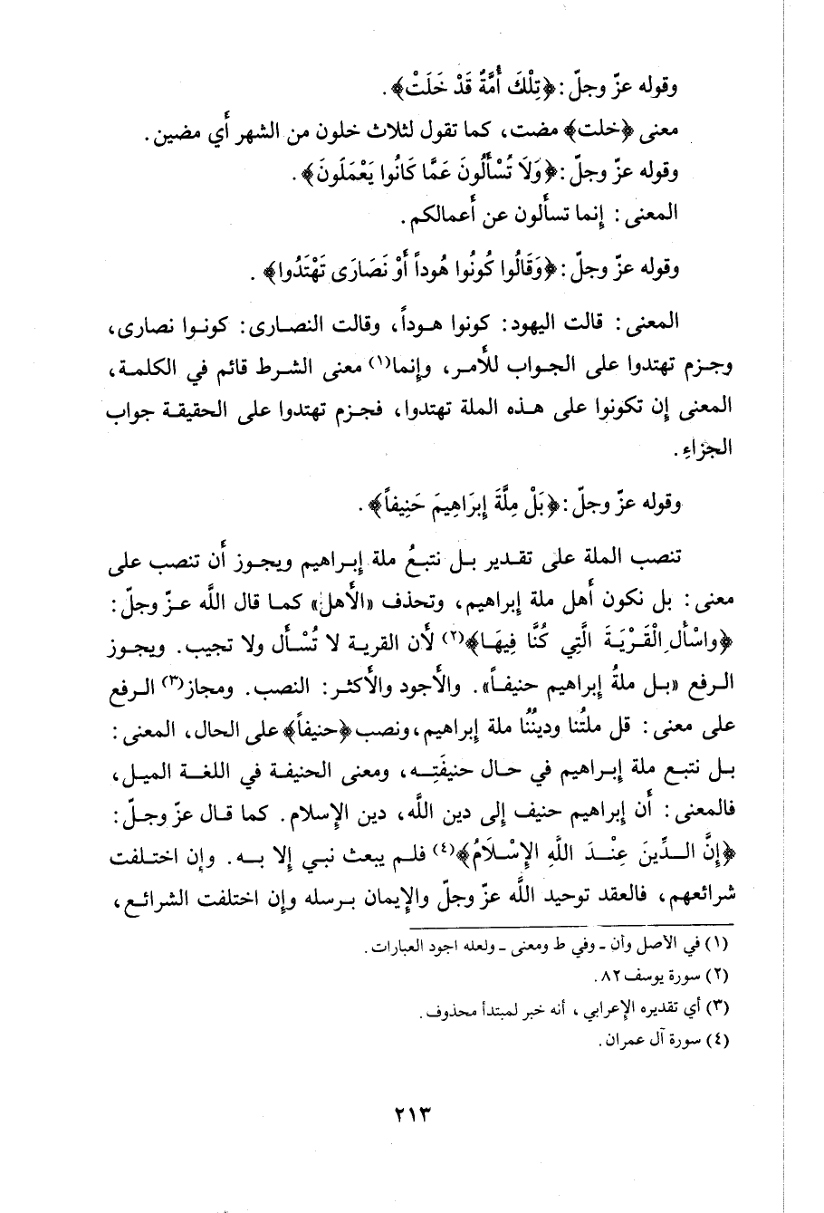 وقوله عزَّ وجلَّ: (وَقَالُوا كُونُوا هُودًا أَوْ نَصَارَى تَهْتَدُوا قُلْ بَلْ مِلَّةَ إِبْرَاهِيمَ حَنِيفًا وَمَا كَانَ مِنَ الْمُشْرِكِينَ (135)
