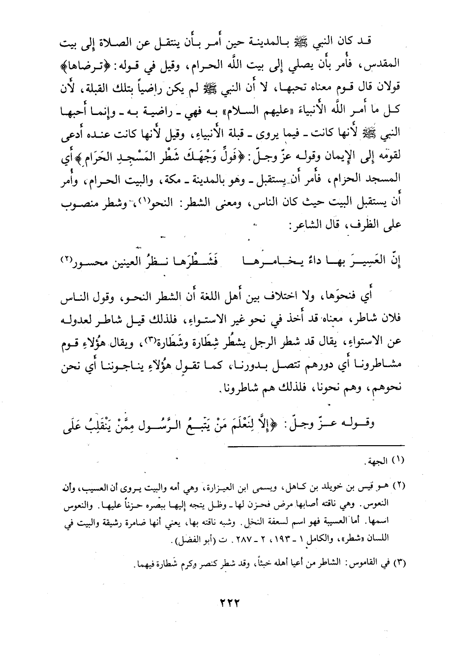 أي المسجد الحرام، فأمر أن يستقبل - وهو بالمدينة - مكة، والبيت الحرام، وأمر أن يستقبل البيت حيث كان الناس، ومعنى الشطر: النحو.