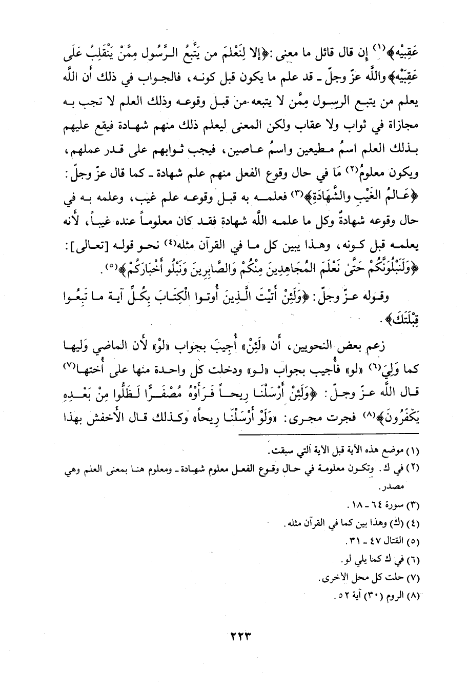 إِن قال قائل ما معنى: (إِلَّا لِنَعْلَمَ مَنْ يَتَّبِعُ الرَّسُولَ مِمَّنْ يَنْقَلِبُ عَلَى عَقِبَيْهِ) واللَّه عزَّ وجلَّ - قد علم ما يكون قبل كونه؟