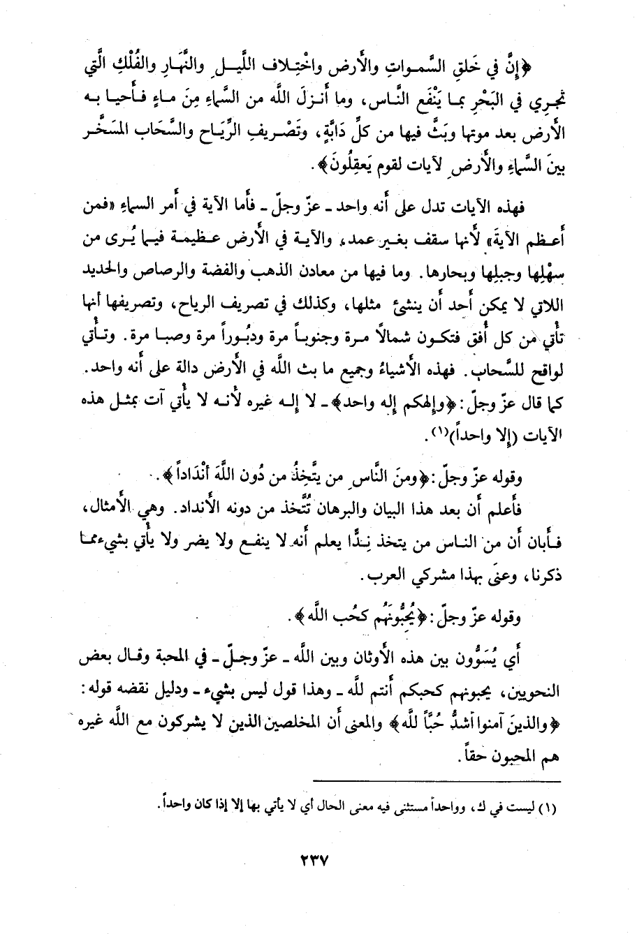 كما قال عزَّ وجلَّ: (وَإِلَهُكُمْ إِلَهٌ وَاحِدٌ) - لا إله غيره لأنه لا يأتي آت بمثل هذه الآيات (إلا واحداً).
