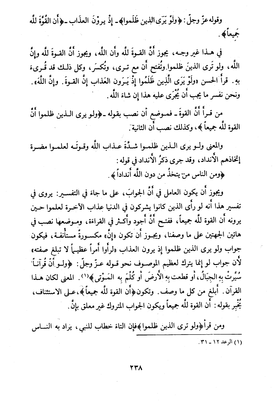 الله، ولو تَرى الذينَ ظلموا وتُفتح أن مع ترى، وتُكسَر، وكل ذلك قد قُرئ بهِ.