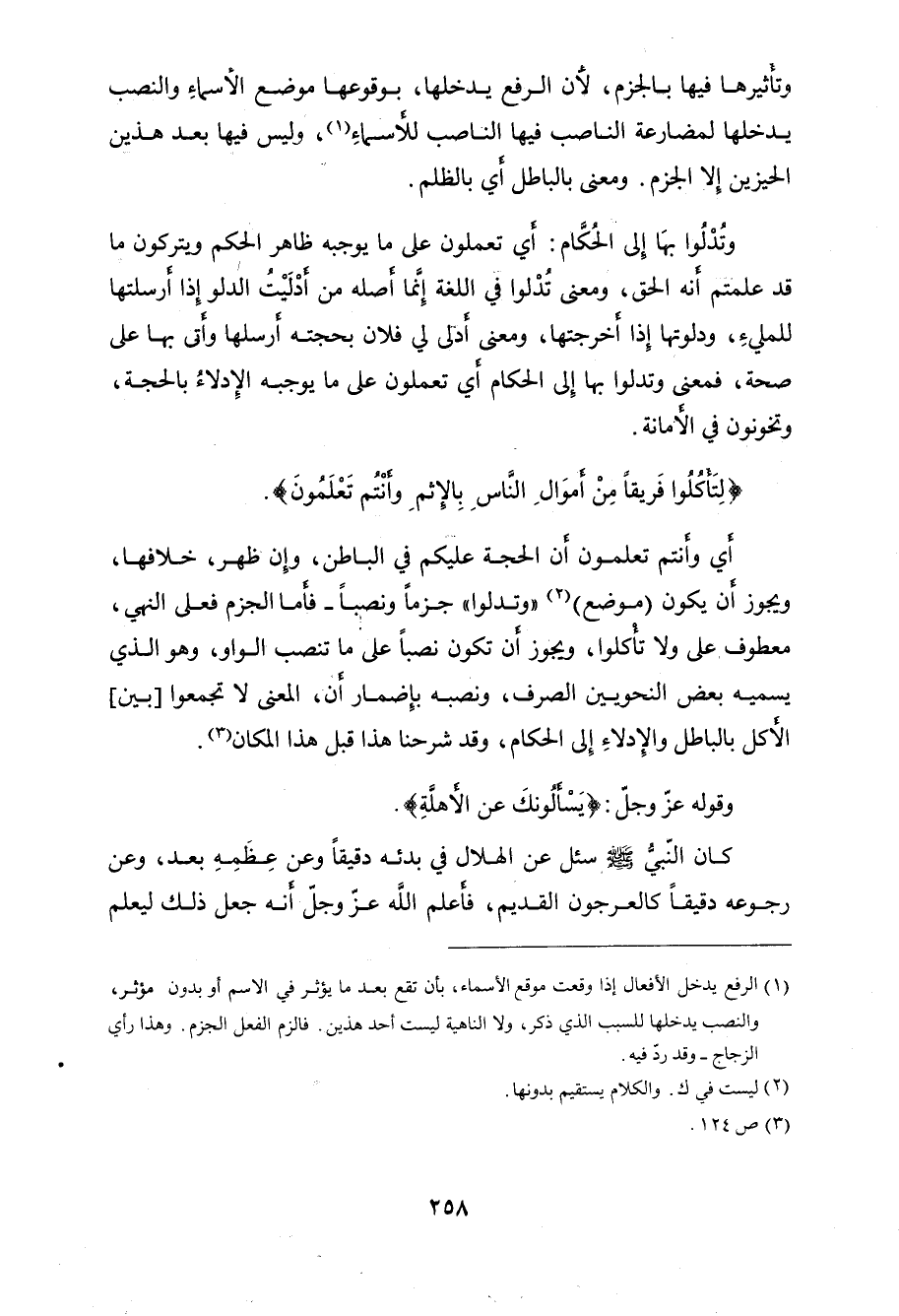 (لِتَأكُلُوا فَريقاً مِنْ أموَالِ النَّاسِ بِالإثمِ وأنْتُم تَعْلَمُونَ).
