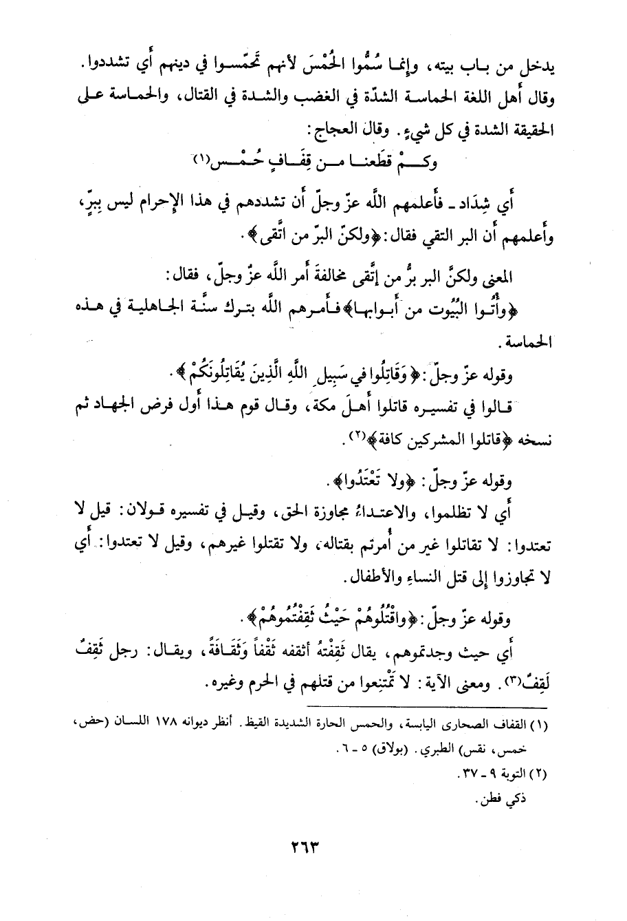 وقوله عزَّ وجلَّ: (وَقَاتِلُوا فِي سَبِيلِ اللَّهِ الَّذِينَ يُقَاتِلُونَكُمْ وَلَا تَعْتَدُوا إِنَّ اللَّهَ لَا يُحِبُّ الْمُعْتَدِينَ (190)