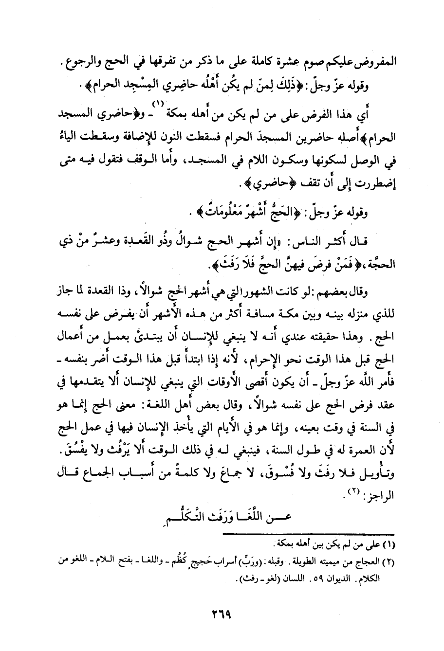 (فَمَنْ فَرَضَ فِيهِنَّ الْحَجَّ فَلَا رَفَثَ).