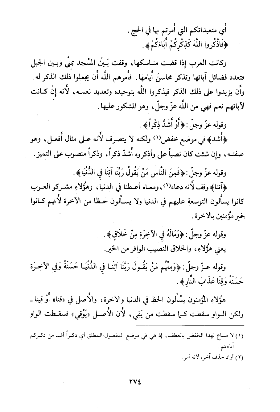 (فَاذْكُرُوا اللَّهَ كَذِكْرِكُمْ آبَاءَكُمْ).