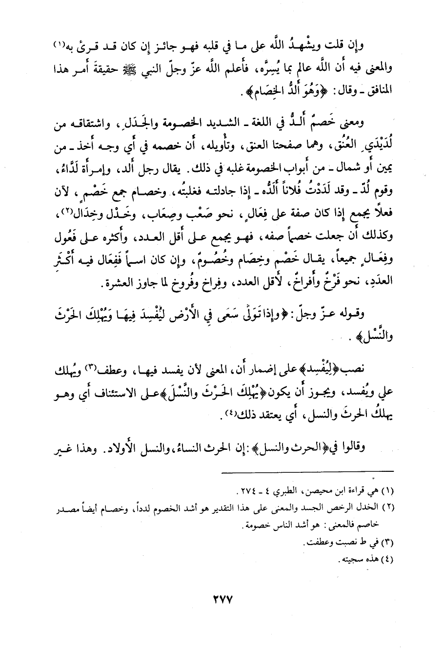 وقالوا في (الحرث والنسل): إن الحرث النساء والنسل الأولاد.