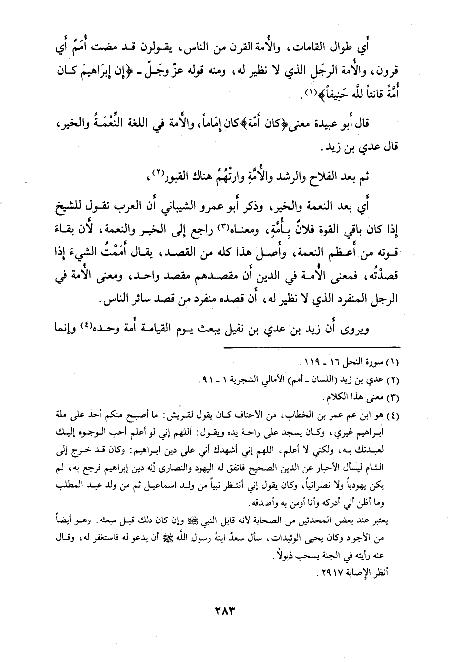 ومنه قوله عزَّ وجلَّ - (إِنَّ إِبْرَاهِيمَ كَانَ أُمَّةً قَانِتًا لِلَّهِ حَنِيفًا).