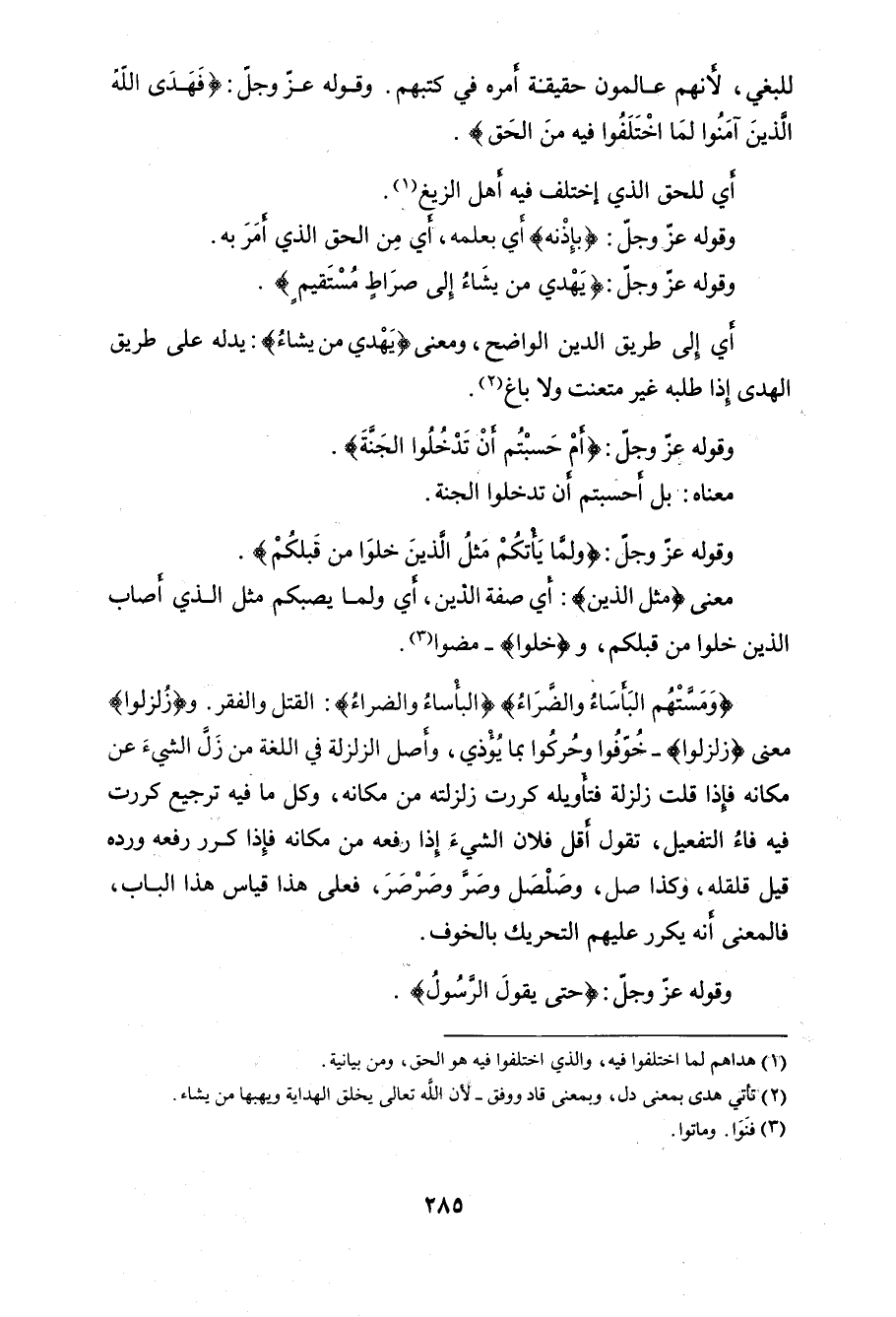 وقوله عزَّ وجلَّ: (أَمْ حَسِبْتُمْ أَنْ تَدْخُلُوا الْجَنَّةَ وَلَمَّا يَأْتِكُمْ مَثَلُ الَّذِينَ خَلَوْا مِنْ قَبْلِكُمْ مَسَّتْهُمُ الْبَأْسَاءُ وَالضَّرَّاءُ وَزُلْزِلُوا حَتَّى يَقُولَ الرَّسُولُ وَالَّذِينَ آمَنُوا مَعَهُ مَتَى نَصْرُ اللَّهِ أَلَا إِنَّ نَصْرَ اللَّهِ قَرِيبٌ (214)