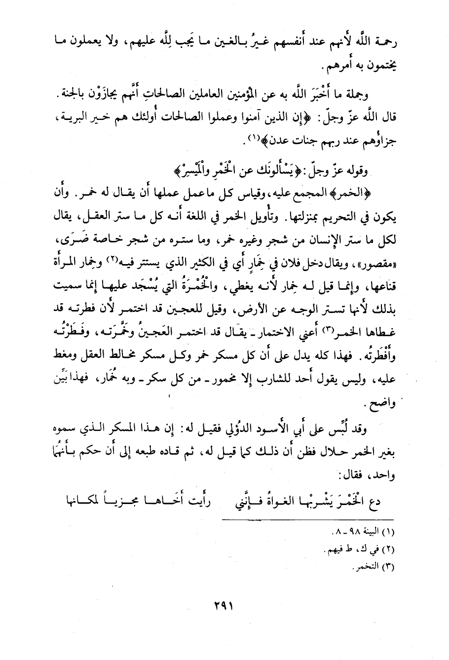 دع الْخَمْرَ يَشْربْها الغواةُ فإِنَني. . . رأيت أخَاها مجزياً لمكانها