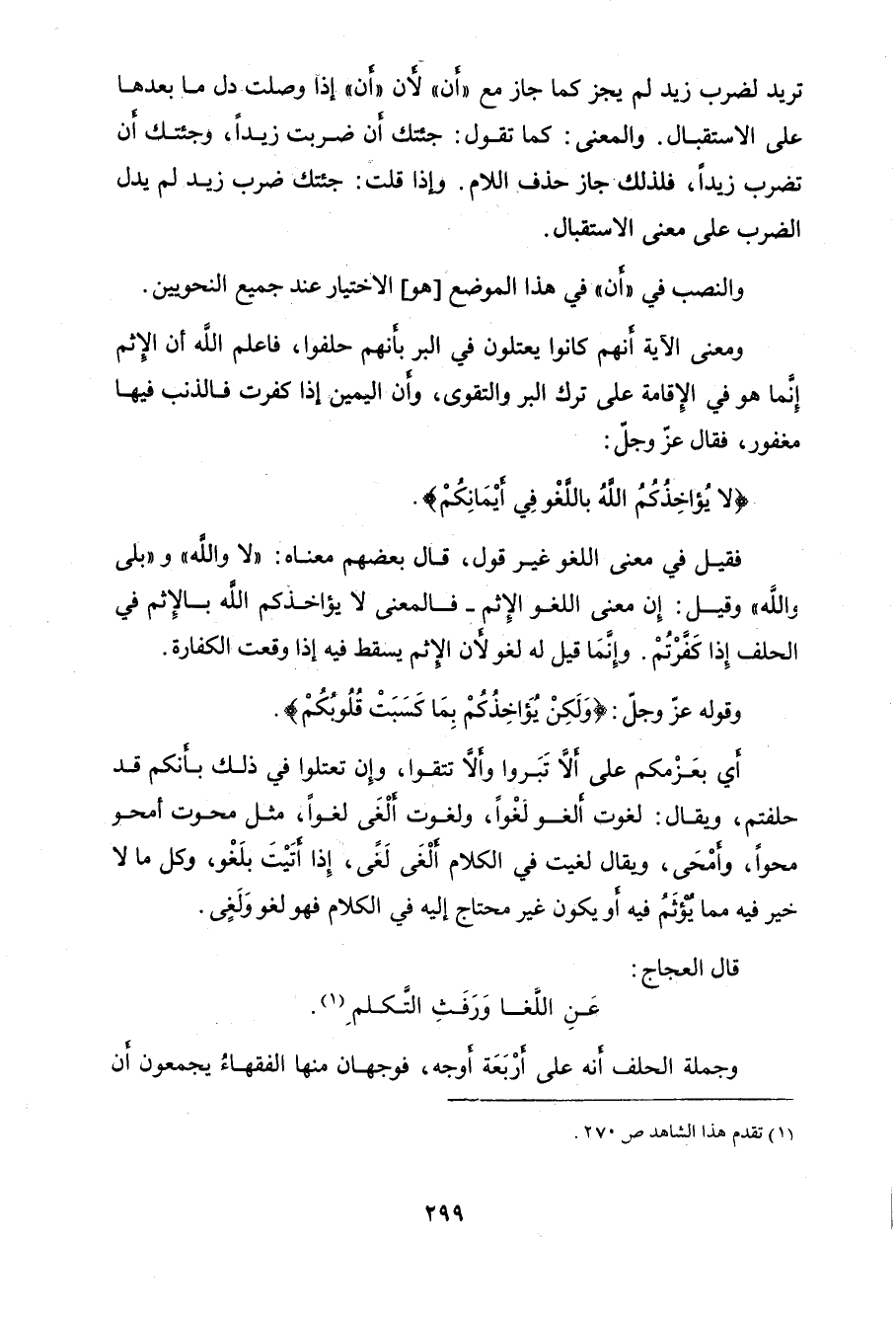 " لا واللَّه " و " بلى واللَّه " وقيل: إِن معنى اللغو الإِثم -