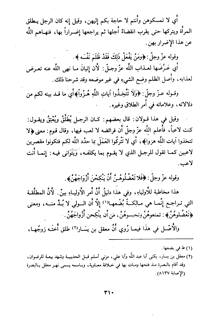 وقوله عزَّ وجلَّ: (وَإِذَا طَلَّقْتُمُ النِّسَاءَ فَبَلَغْنَ أَجَلَهُنَّ فَلَا تَعْضُلُوهُنَّ أَنْ يَنْكِحْنَ أَزْوَاجَهُنَّ إِذَا تَرَاضَوْا بَيْنَهُمْ بِالْمَعْرُوفِ ذَلِكَ يُوعَظُ بِهِ مَنْ كَانَ مِنْكُمْ يُؤْمِنُ بِاللَّهِ وَالْيَوْمِ الْآخِرِ ذَلِكُمْ أَزْكَى لَكُمْ وَأَطْهَرُ وَاللَّهُ يَعْلَمُ وَأَنْتُمْ لَا تَعْلَمُونَ (232)