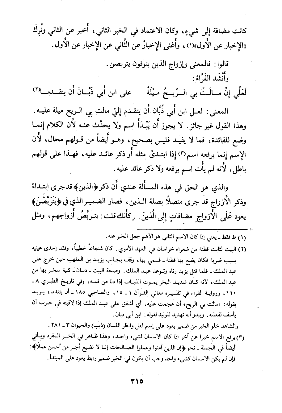 والذي هو الحق في هذه المسألة عندي أن ذكر (الذين) قد جرى ابتداءً