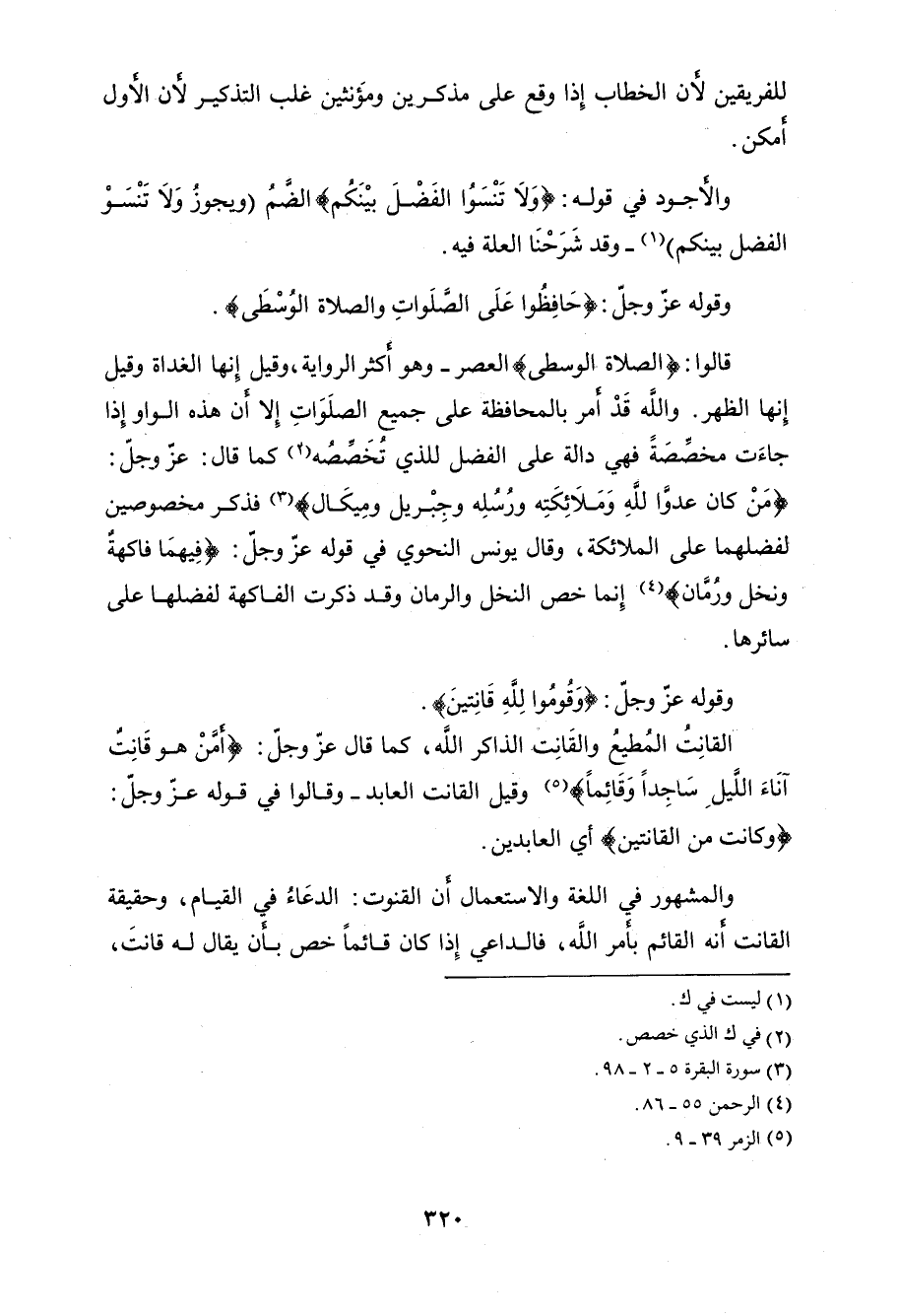 وقوله عزَّ وجلَّ: (حَافِظُوا عَلَى الصَّلَوَاتِ وَالصَّلَاةِ الْوُسْطَى وَقُومُوا لِلَّهِ قَانِتِينَ (238)