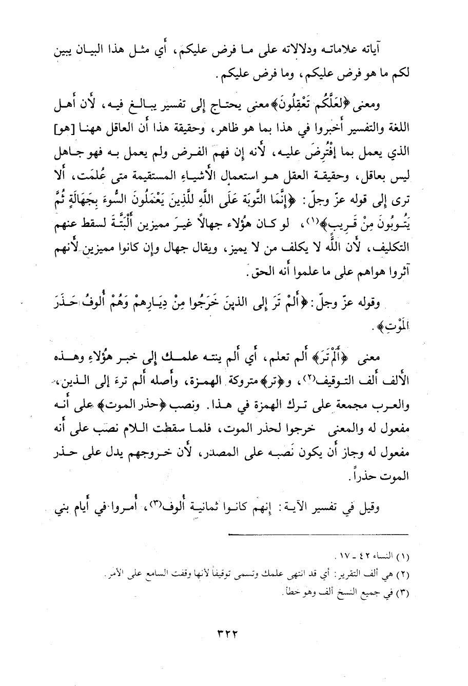 ترى إِلى قوله عزَّ وجلَّ: (إِنَّمَا التَّوْبَةُ عَلَى اللَّهِ لِلَّذِينَ يَعْمَلُونَ السُّوءَ بِجَهَالَةٍ ثُمَّ يَتُوبُونَ مِنْ قَرِيبٍ)، لو كان هُؤلاء جهالاً غيرَ مميزين ألبَتَّةَ لسقط عنهم