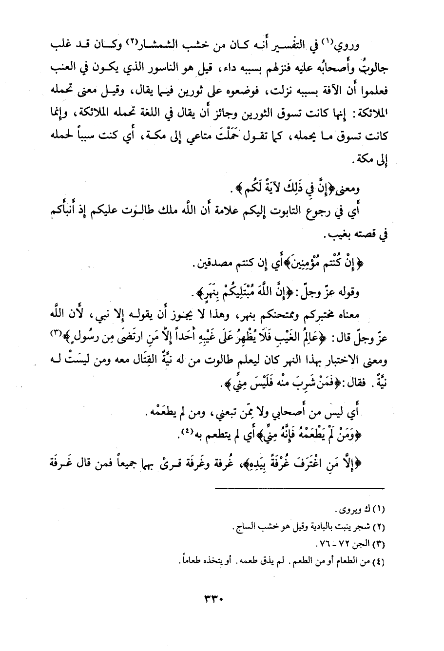 وقوله عزَّ وجلَّ: (فَلَمَّا فَصَلَ طَالُوتُ بِالْجُنُودِ قَالَ إِنَّ اللَّهَ مُبْتَلِيكُمْ بِنَهَرٍ فَمَنْ شَرِبَ مِنْهُ فَلَيْسَ مِنِّي وَمَنْ لَمْ يَطْعَمْهُ فَإِنَّهُ مِنِّي إِلَّا مَنِ اغْتَرَفَ غُرْفَةً بِيَدِهِ فَشَرِبُوا مِنْهُ إِلَّا قَلِيلًا مِنْهُمْ فَلَمَّا جَاوَزَهُ هُوَ وَالَّذِينَ آمَنُوا مَعَهُ قَالُوا لَا طَاقَةَ لَنَا الْيَوْمَ بِجَالُوتَ وَجُنُودِهِ قَالَ الَّذِينَ يَظُنُّونَ أَنَّهُمْ مُلَاقُو اللَّهِ كَمْ مِنْ فِئَةٍ قَلِيلَةٍ غَلَبَتْ فِئَةً كَثِيرَةً بِإِذْنِ اللَّهِ وَاللَّهُ مَعَ الصَّابِرِينَ (249)
