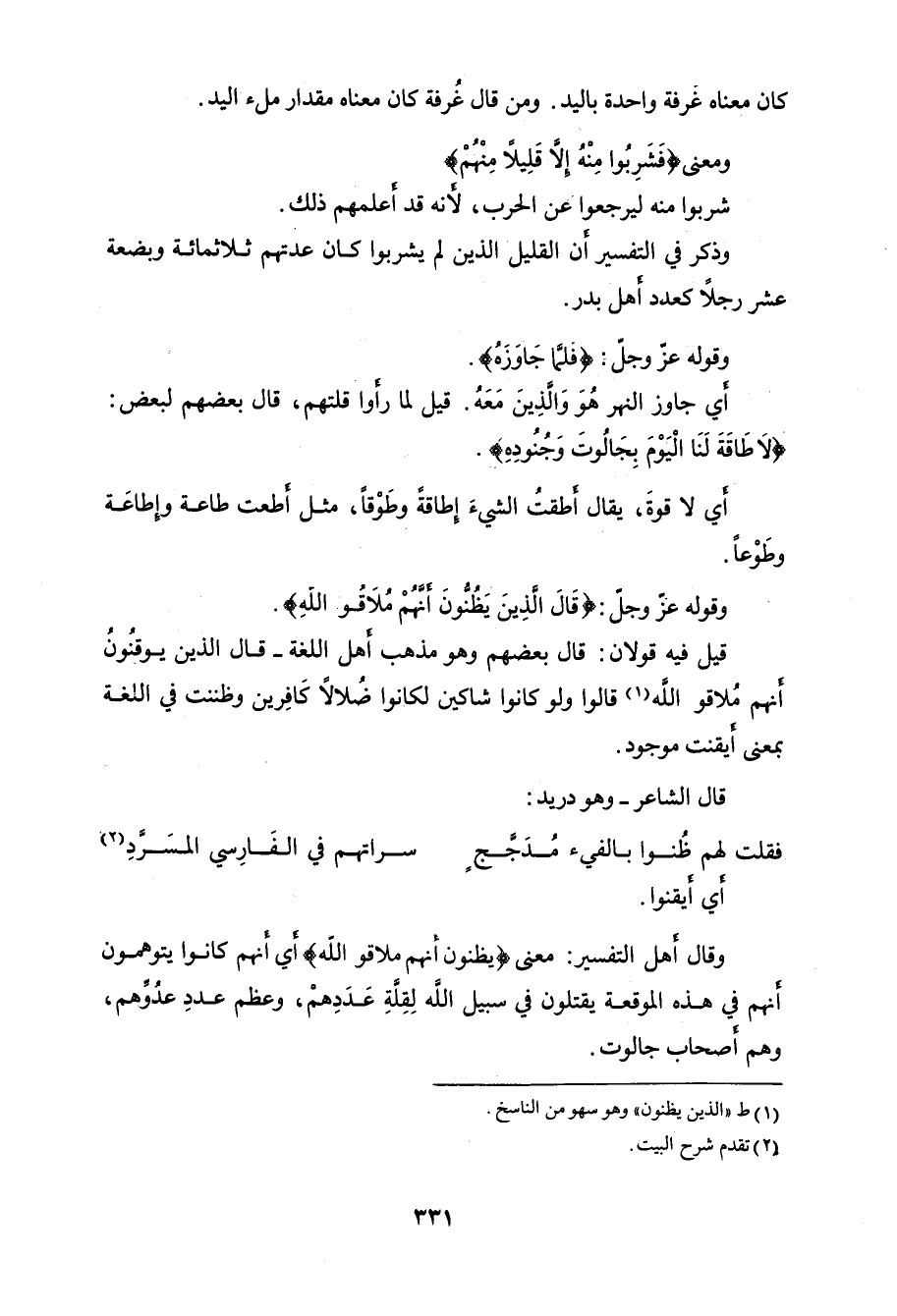 وقوله عزَّ وجلَّ: (قَالَ الَّذِينَ يَظُنُّونَ أَنَّهُمْ مُلَاقُو اللَّهِ).