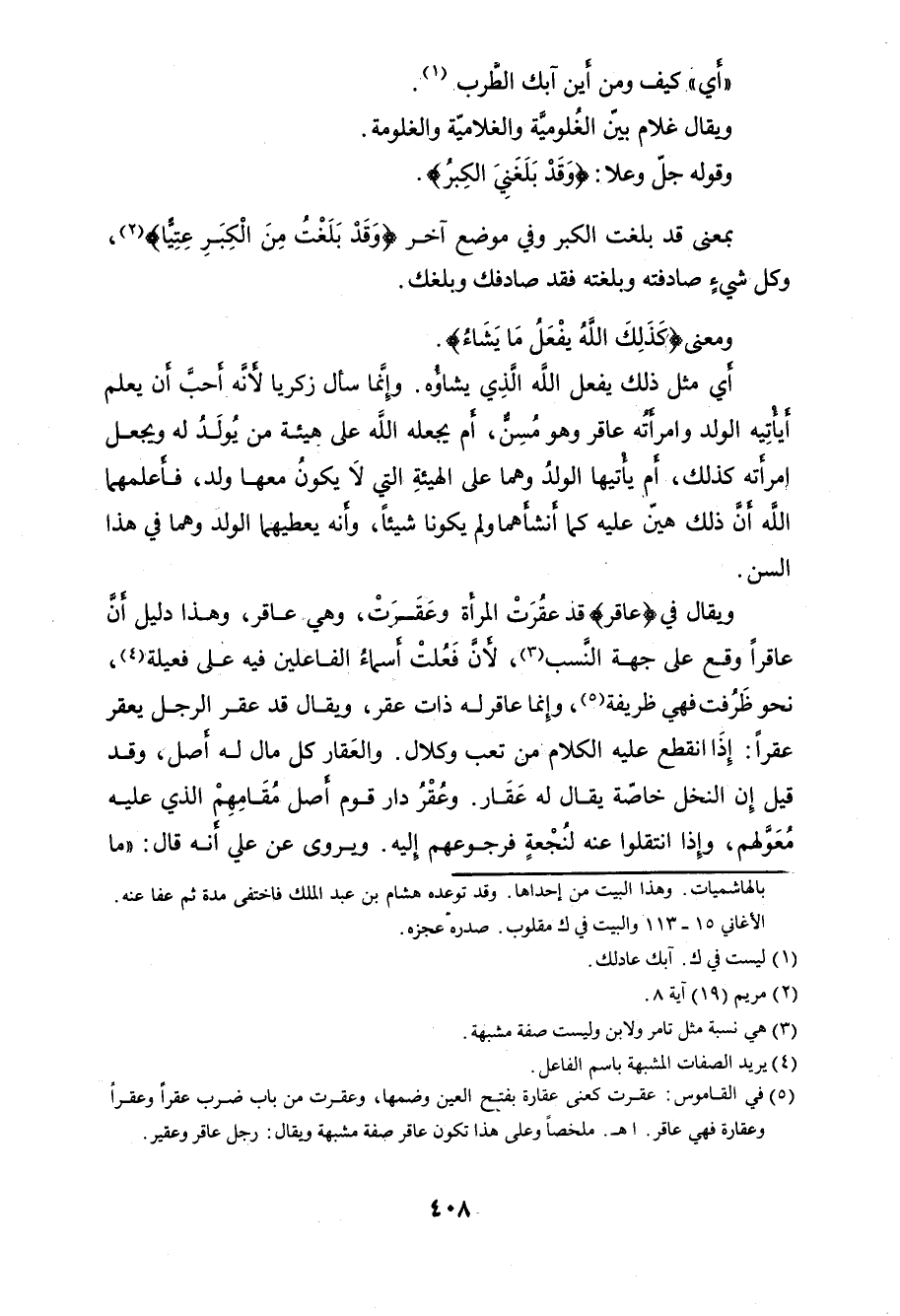ويقال في (عاقر) قد عقرَتْ المرأة وعَقَرَتْ، وهي عاقر، وهذا دليل أنَّ