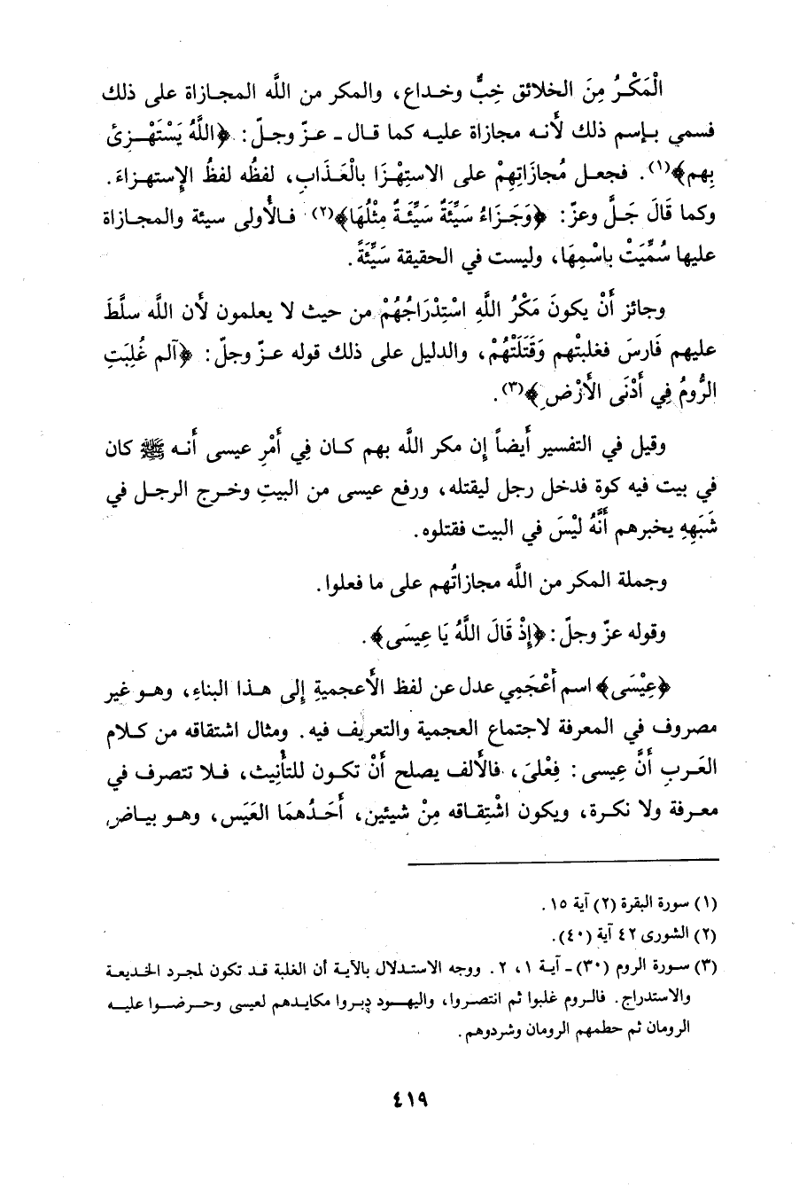 وكما قَالَ جَل وعز: (وَجَزَاءُ سَيِّئَةٍ سَيِّئَةٌ مِثْلُهَا) فالأولى سيئة والمجازاة