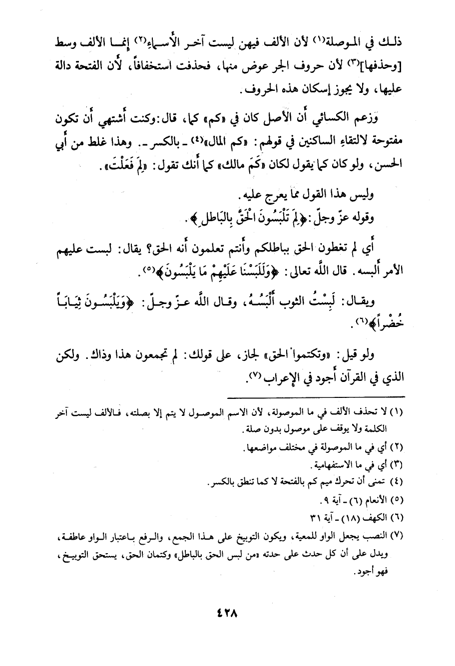 مفتوحة لالتقاءِ السَّاكنين في قولهم: " كم المال " - بالكسر -. وهذا غلط من أبي الحسن، ولو كان كما - يقول لكان " كَمَ مالك " كما أنك تقول: (لِمَ فَعَلْتَ).