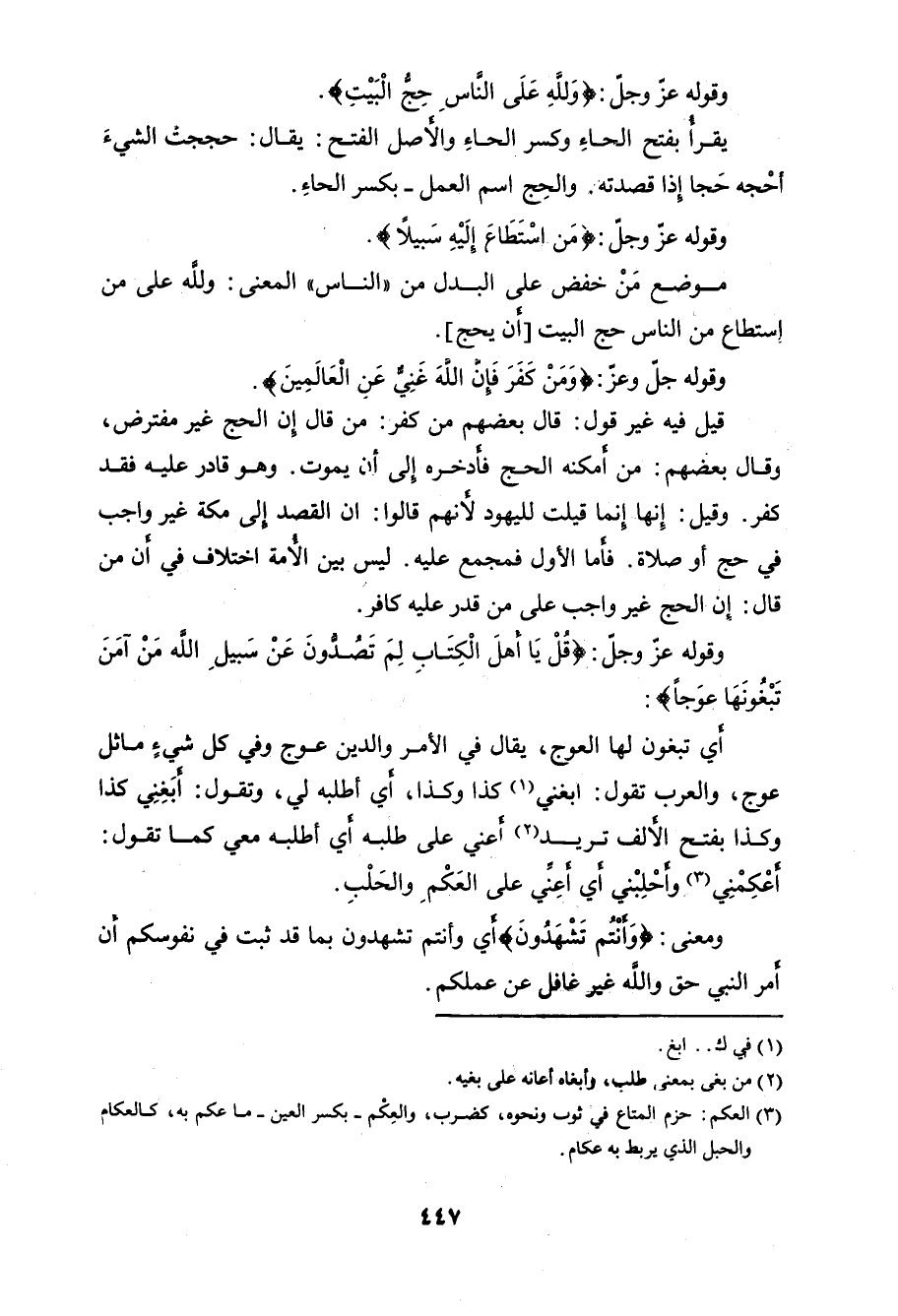 وقوله عزَّ وجلَّ: (وَلِلَّهِ عَلَى النَّاسِ حِجُّ الْبَيْتِ).