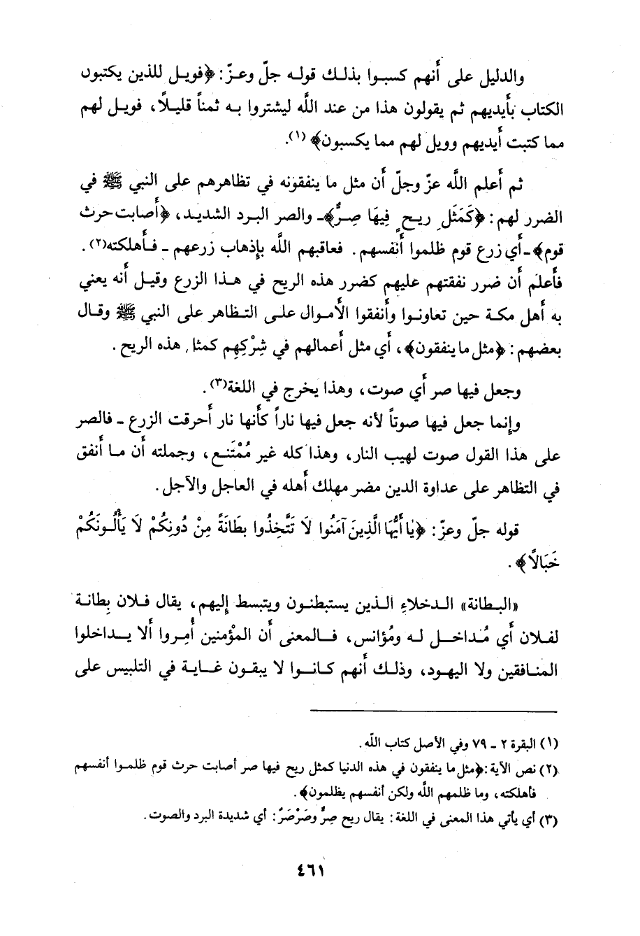 قوله جلَّ وعزَّ: (يَا أَيُّهَا الَّذِينَ آمَنُوا لَا تَتَّخِذُوا بِطَانَةً مِنْ دُونِكُمْ لَا يَأْلُونَكُمْ خَبَالًا وَدُّوا مَا عَنِتُّمْ قَدْ بَدَتِ الْبَغْضَاءُ مِنْ أَفْوَاهِهِمْ وَمَا تُخْفِي صُدُورُهُمْ أَكْبَرُ قَدْ بَيَّنَّا لَكُمُ الْآيَاتِ إِنْ كُنْتُمْ تَعْقِلُونَ (118)