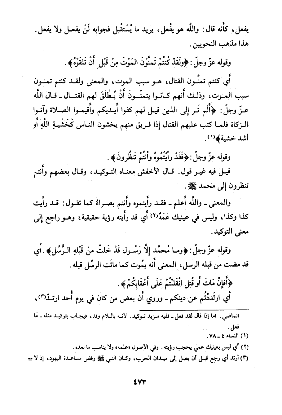 وقوله عزَّ وجل: (وَلَقَدْ كُنْتُمْ تَمَنَّوْنَ الْمَوْتَ مِنْ قَبْلِ أَنْ تَلْقَوْهُ فَقَدْ رَأَيْتُمُوهُ وَأَنْتُمْ تَنْظُرُونَ (143)