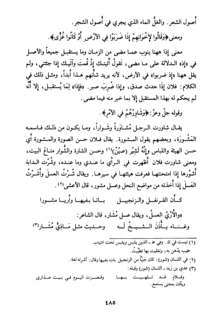 كأَنَّ القَرنْفُلَ والزَّنْجَبِيلَ. . . باتا بِفيها وأَرْياً مَشُورا