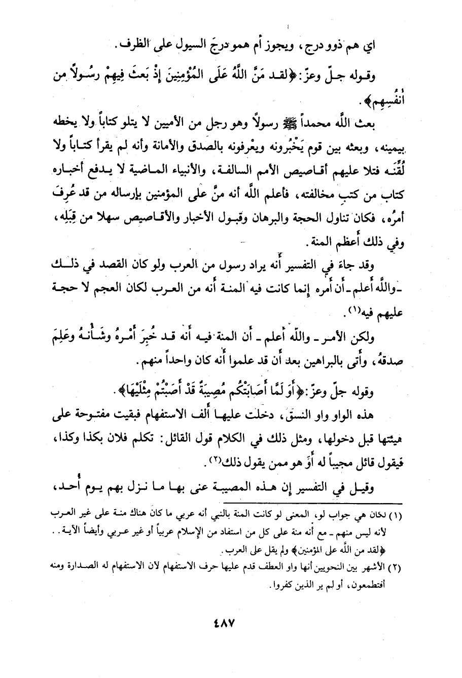 - واللَّه أعلم - أن أمره إنما كانت فيه المنة أنه من العرب لكان العجم لا حجة عليهم فيه.