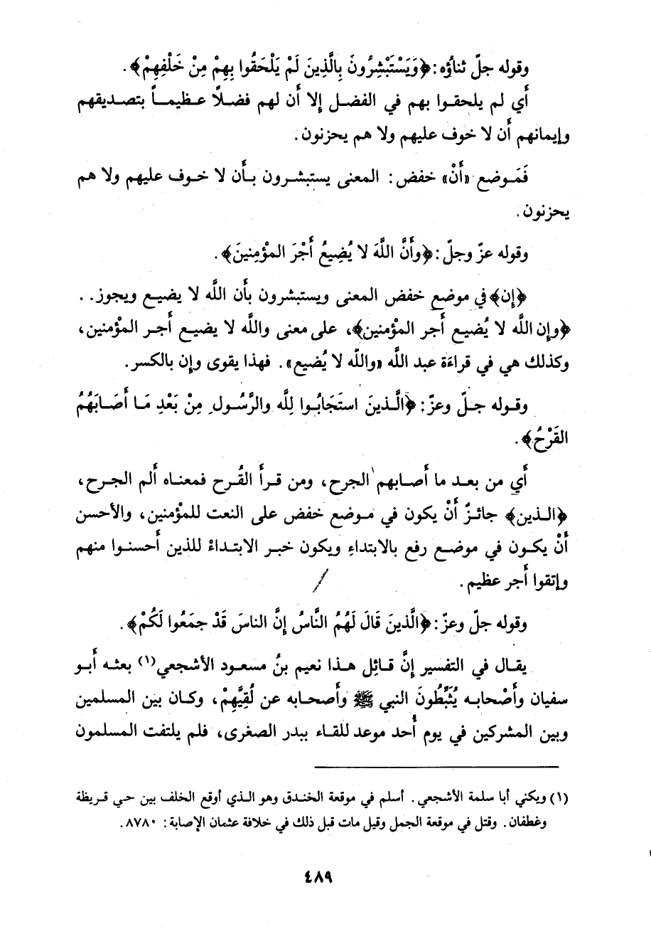 وقوله عزَّ وجلَّ: (يَسْتَبْشِرُونَ بِنِعْمَةٍ مِنَ اللَّهِ وَفَضْلٍ وَأَنَّ اللَّهَ لَا يُضِيعُ أَجْرَ الْمُؤْمِنِينَ (171)
