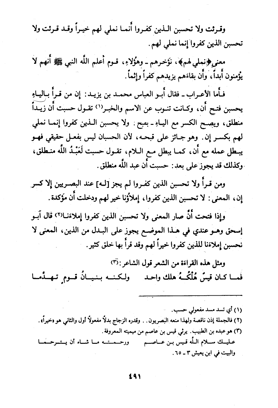 منطلق، ويصح الكسر مع الياءِ - بفتح (ولا يحسبن الذين كفروا إنما نملي