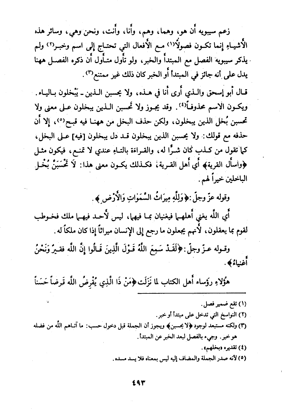 قال أبو إسحاق والذي أرى أنا في هذه، (ولا يحسبن الذين يَبْخلون) بالياء.