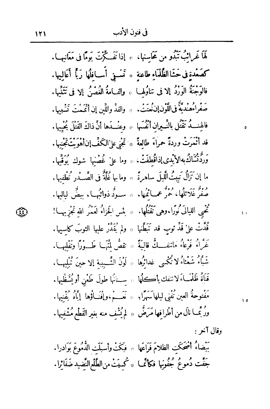 لها غرائب تبدو من محاسنها، ... إذا تفكّرت يوما فى معانيها.