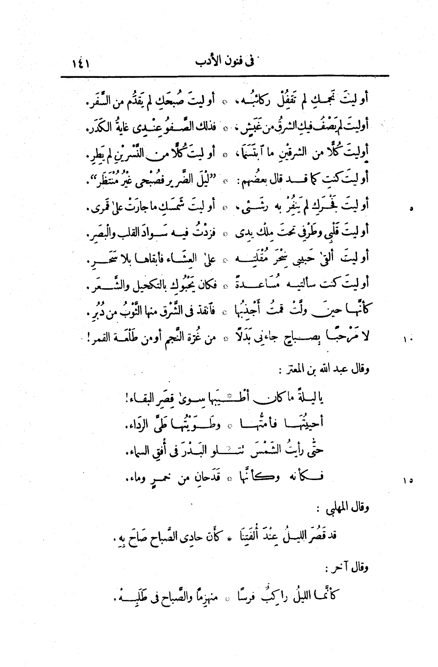 وقال عبد الله بن المعتز: