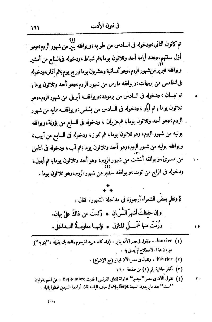 [4] نقول الآن فى مصر «سبتمبر» مجاراة للنطق الفرنسى الحديث SePtemBRe.على انهم يقولون «ست» عند ما يريدون السبعة SePt بإهمال حرف الباء، فاذا أرادوا السبعين لفظوا بالباء.