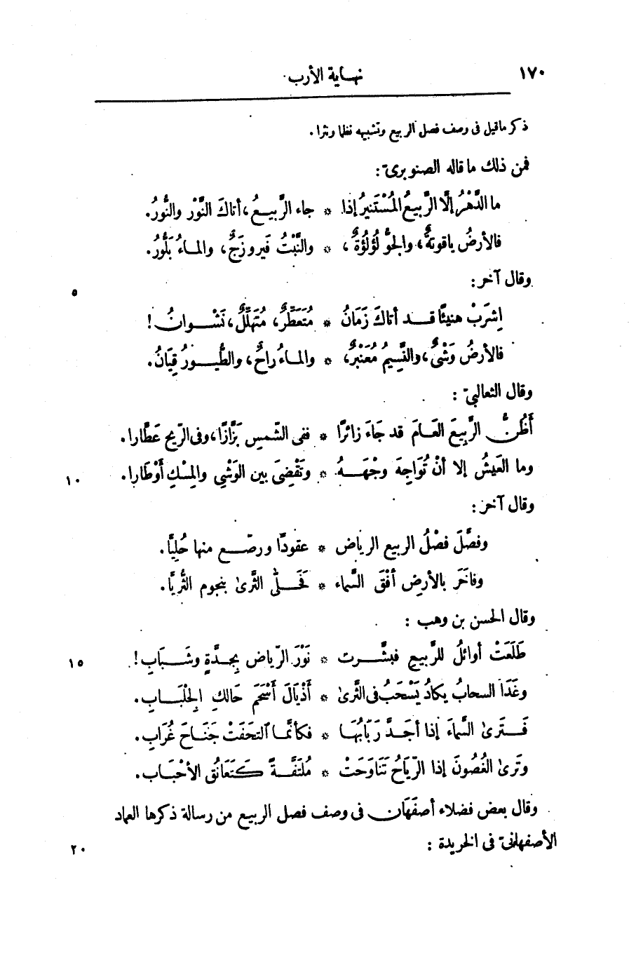 وقال بعض فضلاء أصفهان فى وصف فصل الربيع من رسالة ذكرها العماد الأصفهانىّ فى الخريدة: