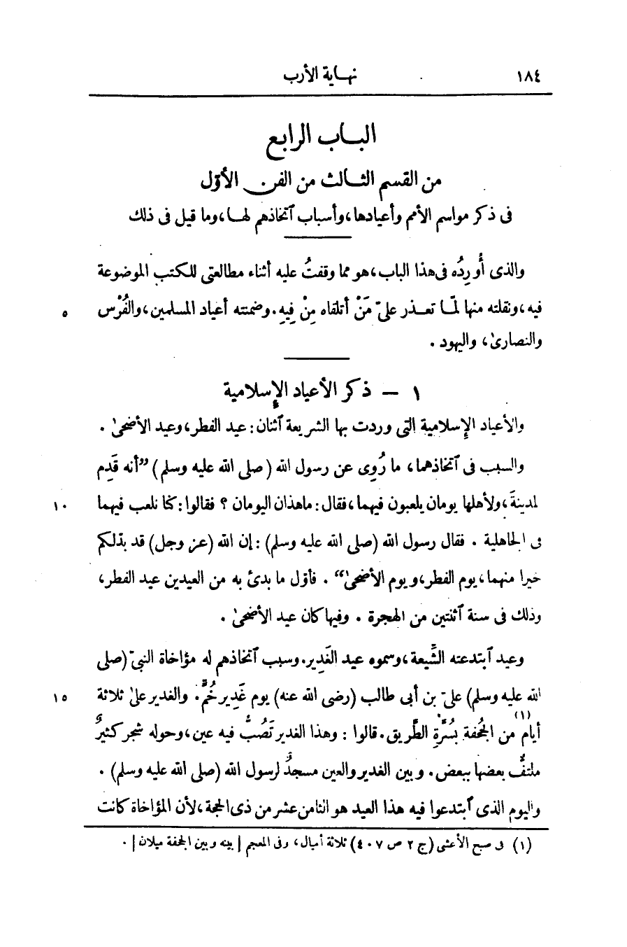والذى أورده فى هذا الباب، هو مما وقفت عليه أثناء مطالعتى للكتب الموضوعة فيه، ونقلته منها لمّا تعذر علىّ من أتلقاه من فيه. وضمنته أعياد المسلمين، والفرس والنصارى، واليهود.