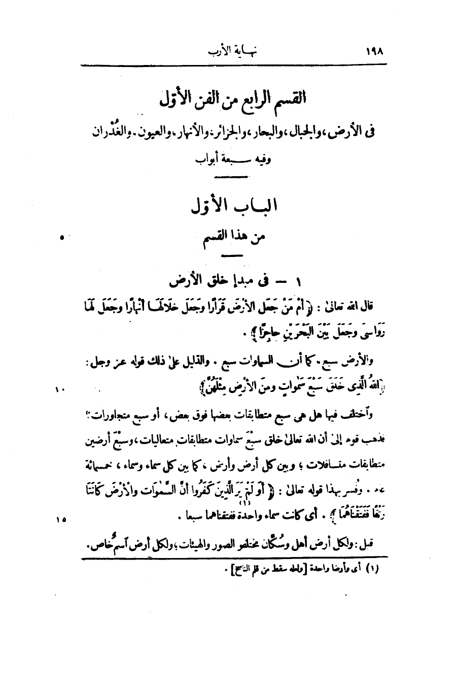 الباب الأوّل من هذا القسم 1- فى مبدإ خلق الأرض