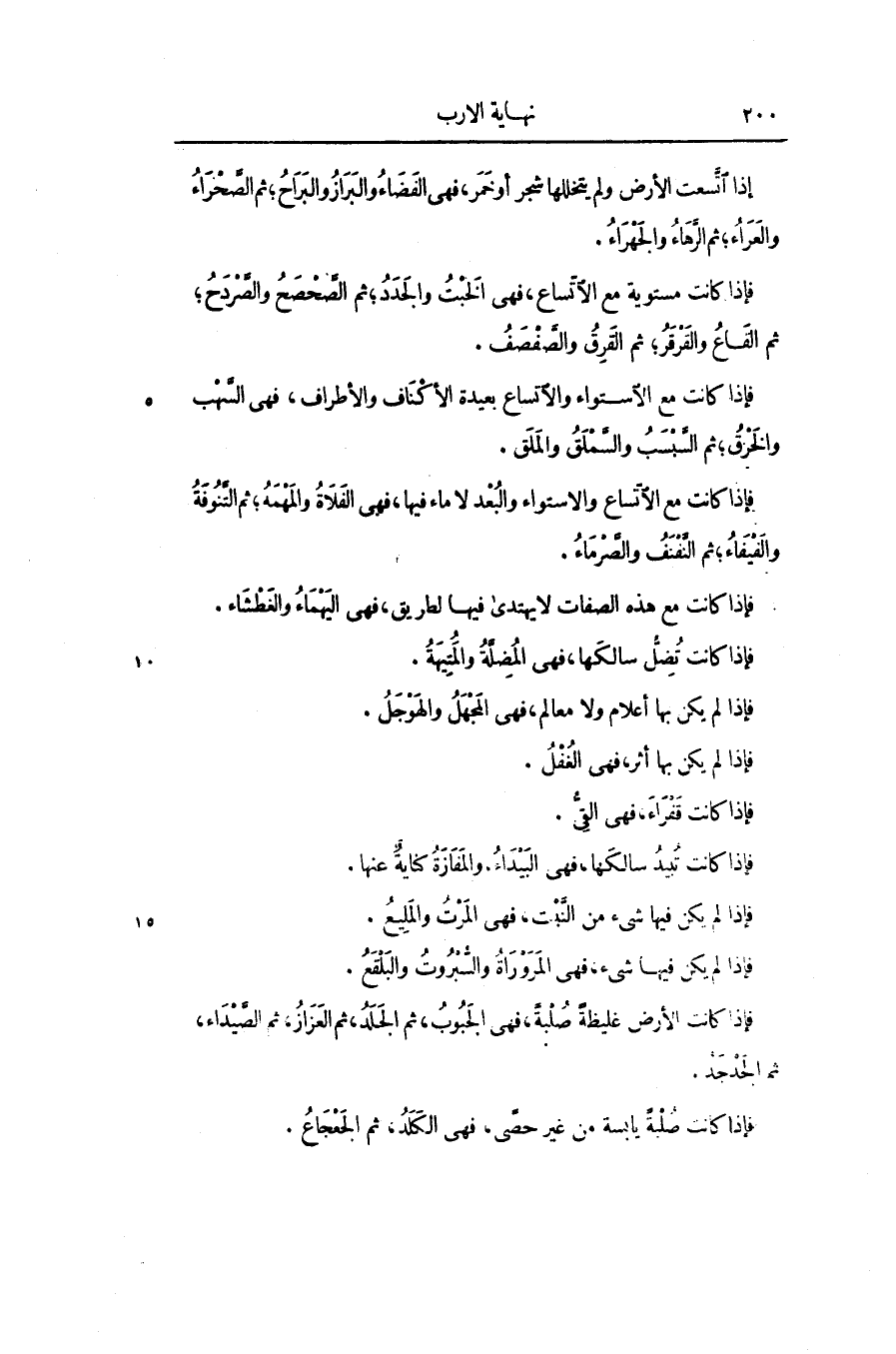 فإذا كانت مستوية مع الاتّساع، فهى الخبت والجدد؛ ثم الصّحصح والصّردح؛ ثم القاع والقرقر؛ ثم القرق والصّفصف.