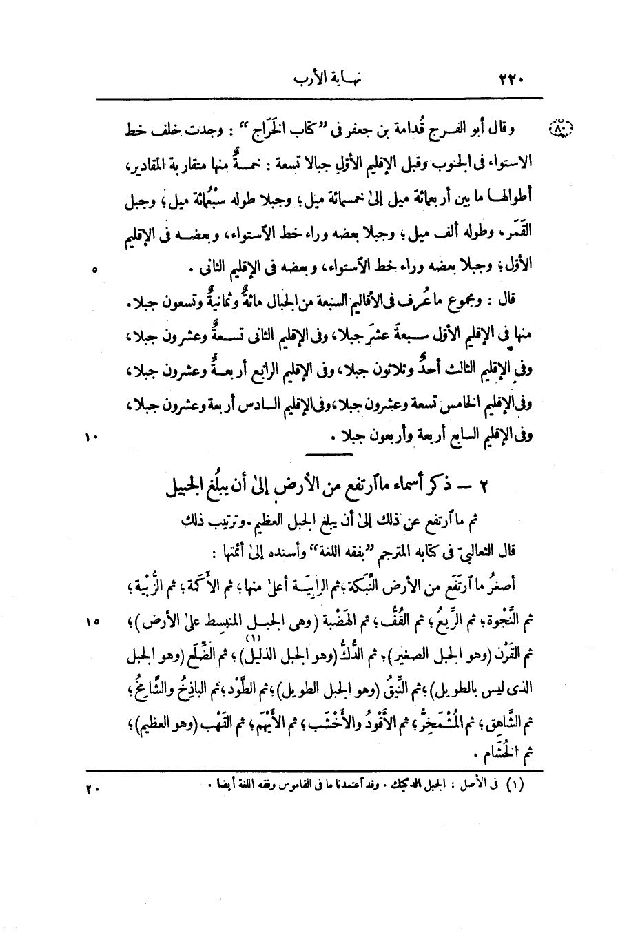 2- ذكر أسماء ما ارتفع من الأرض إلى أن يبلغ الجبيل