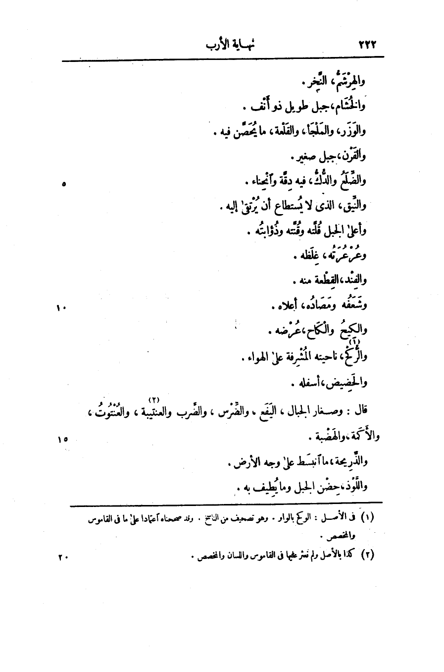 قال: وصغار الجبال، اليفع، والضّرس، والضّرب والعنتيبة [2] ، والعنتوت، والأكمة، والهضبة.