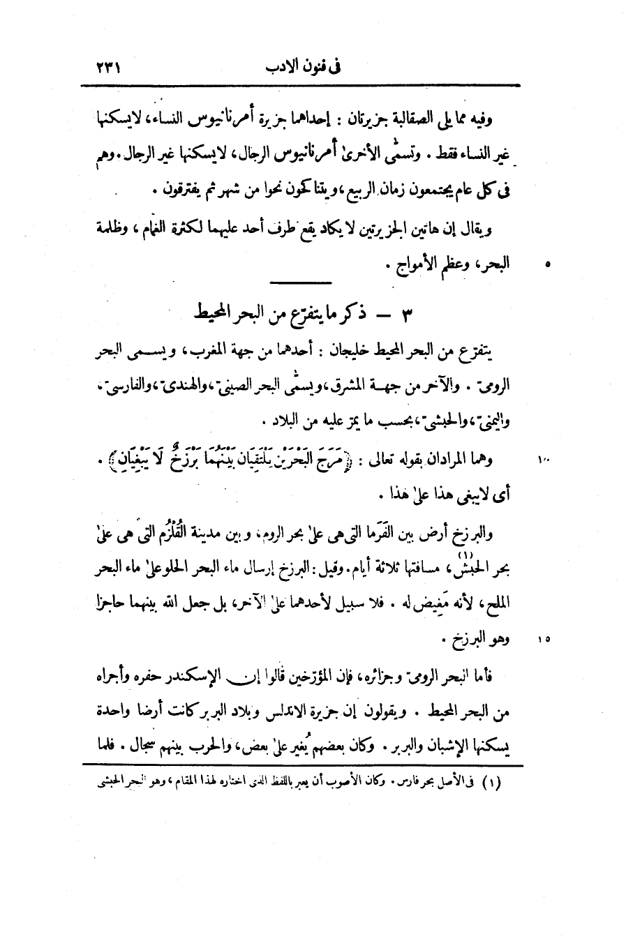 [1] فى الأصل بحر فارس. وكان الأصوب أن يعبر باللفظ الذى اختاره لهذا المقام، وهو البحر الحبشى