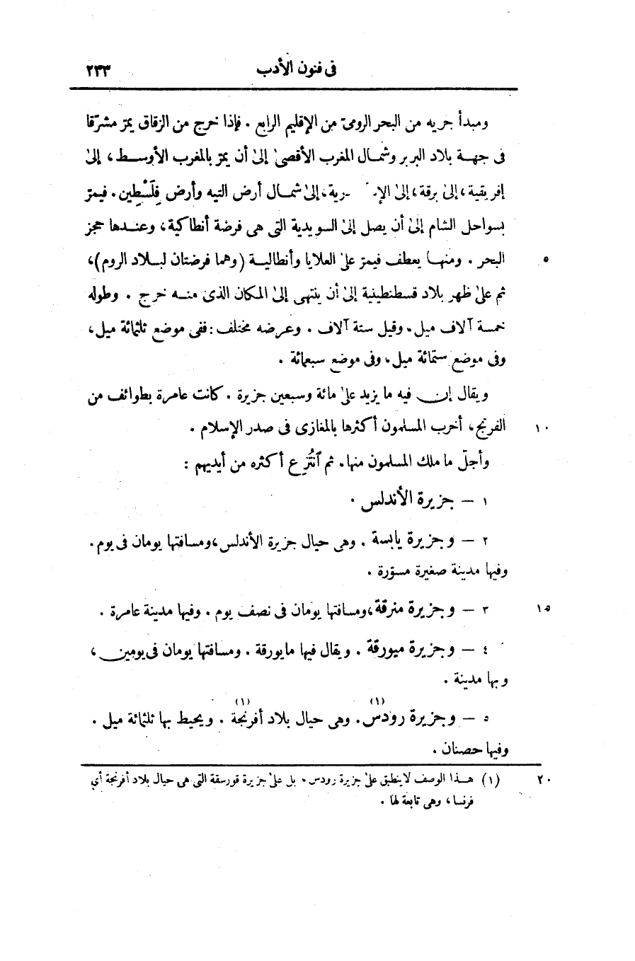 [1] هذا الوصف لا ينطبق على جزيرة رودس، بل على جزيرة قورسقة التى هى حيال بلاد أفرنجة أي فرنسا، وهى تابعة لها.