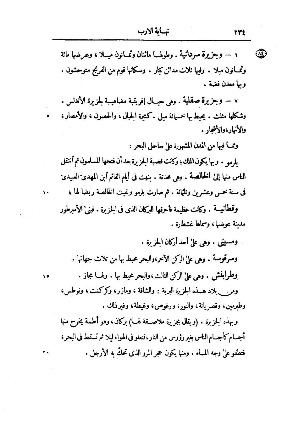 7- وجزيرة صقلية. وهى حيال إفريقية مضاهية لجزيرة الأندلس.