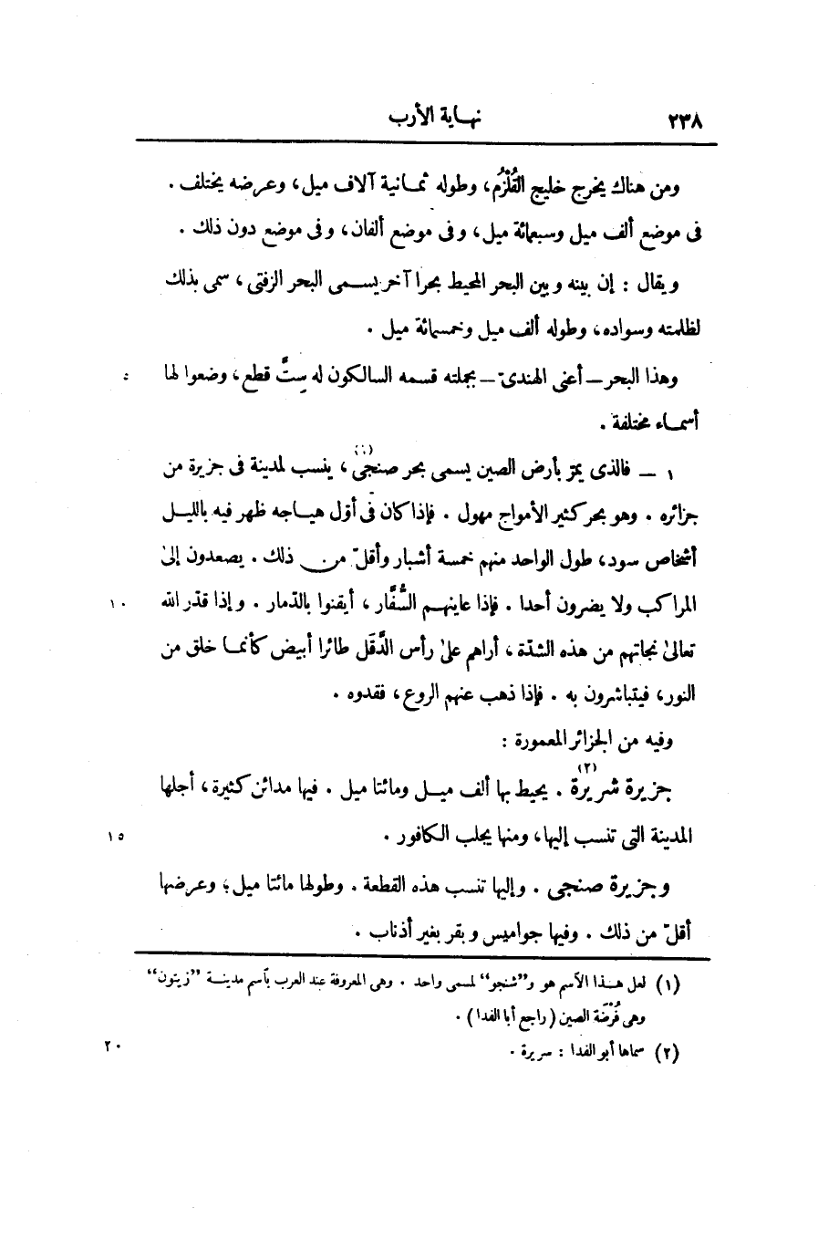[1] لعل هذا الاسم هو و «شنجو» لمسمى واحد. وهى المعروفة عند العرب باسم مدينة «زيتون» وهى فرضة الصين (راجع أبا الفدا) .