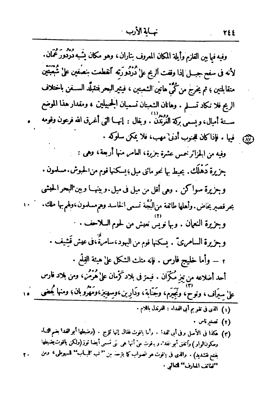 2- وأما خليج فارس. فإنه مثلث الشكل على هيئة القلع.