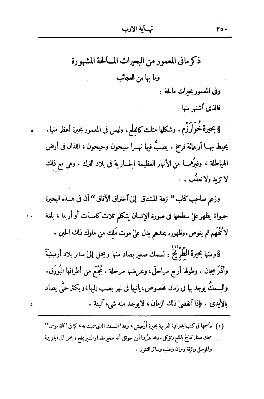 ذكر ما فى المعمور من البحيرات المالحة المشهورة وما بها من العجائب