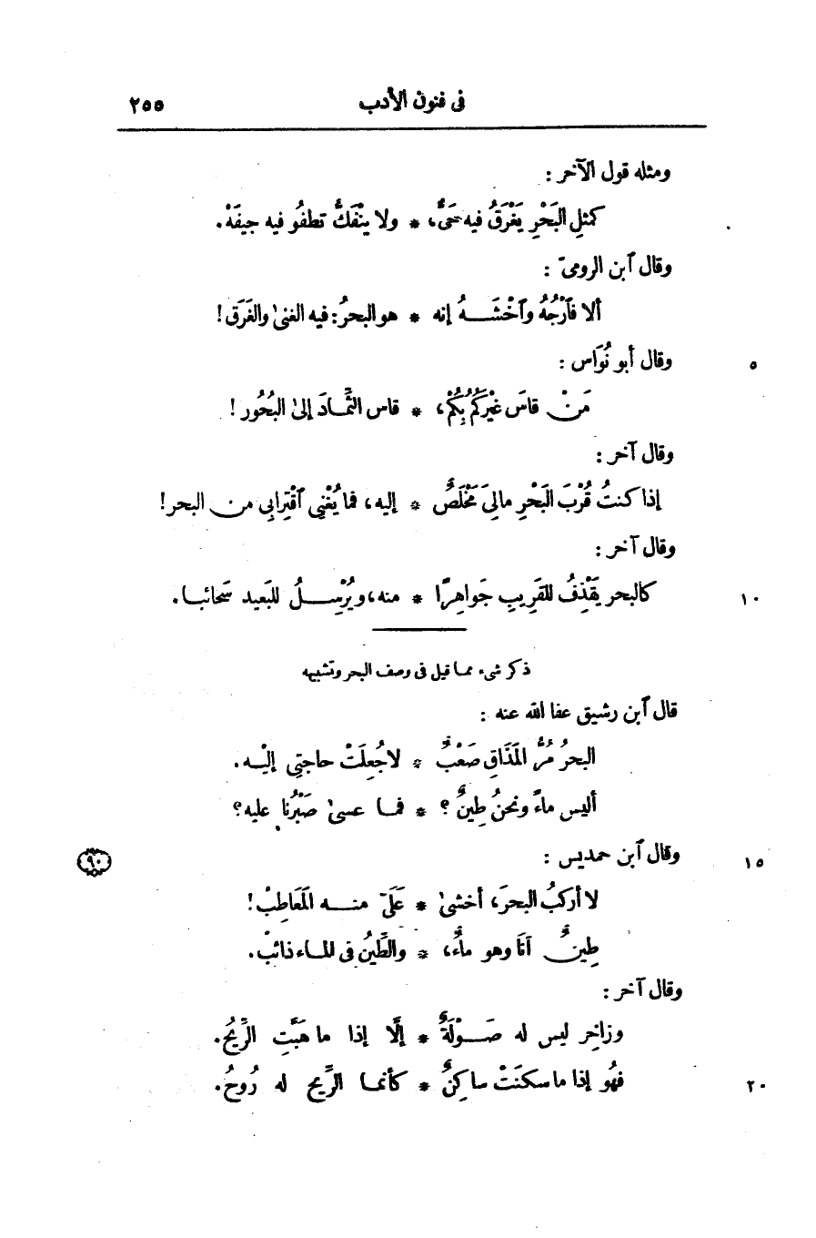 ذكر شىء مما قيل فى وصف البحر وتشبيهه قال ابن رشيق عفا الله عنه: