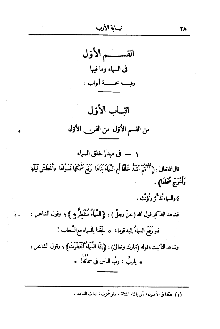 القسم الأوّل فى السماء وما فيها وفيه خمسة أبواب:
